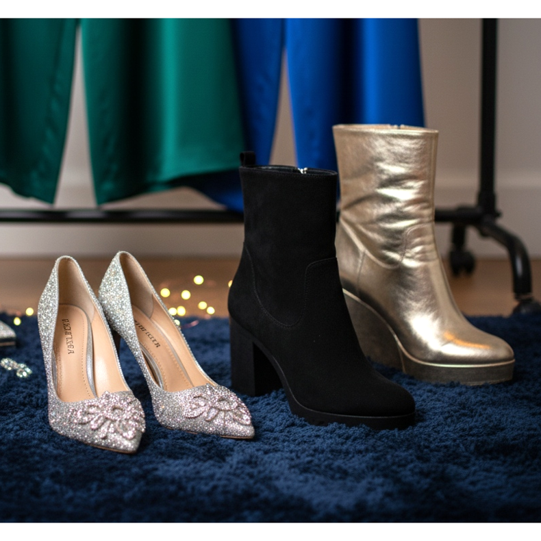 För fans av mer bekväma lösningar kommer ankelboots eller kilar att vara ett perfekt val. Dessa skor kommer att hålla dig bekväm under hela evenemanget och kommer att se elegant och modern ut på samma gång.