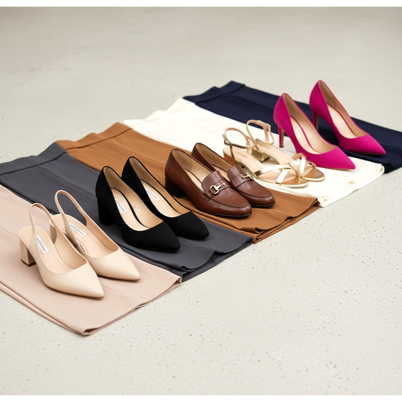 Skor i neutrala färger – svart, beige eller brun – är också en säker lösning. Dessa färger matchar de flesta stilar och kommer att fungera bra både på kontoret och dagligen.