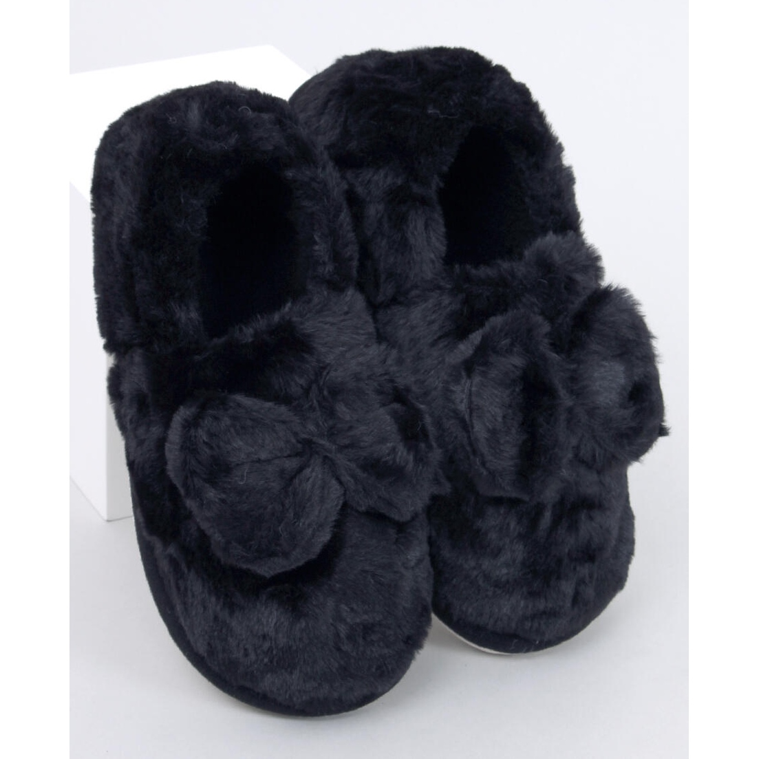 ** Päls tofflor med en Emres svart båge - din lyx hemma! **