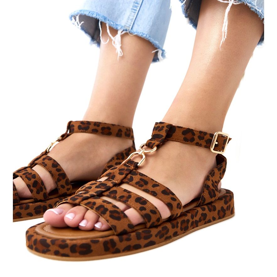 Nargiz -sandaler har en rund näsa och en 3 cm hög plattform, vilket gör dem inte bara eleganta, utan också bekväma dagligen. Deras bruna plastsula harmoniserar med ett fashionabelt leopardmönster och lägger till en unik karaktär till varje sommarstyling.