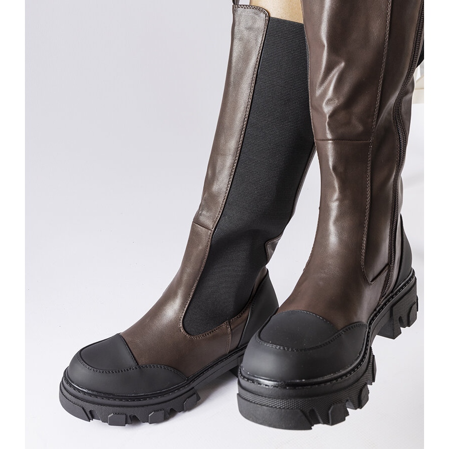 Brown High Pasquale -stövlar är en klassisk och modern modell skapad för vintergarderoben. Tillverkad av ekologiskt läder, isolerade och färdiga med en svart gummisula, säkerställer värme och stabilitet även på hala ytor. JH20-266-modellen kombinerar en enkel form med praktiska lösningar-låset gör det enklare att ta på sig, den rundade näsan lägger till elegans, och 5 cm höga plattformen förlänger subtilt figuren.