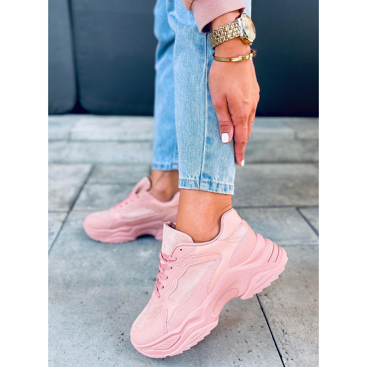 Dalla Pink skor kännetecknas av en moderiktig, tjock sula, som inte bara ger en sportig karaktär, utan också ger tillräcklig dämpning under vardagliga aktiviteter. Insidan av skorna är fodrad med ett behagligt tyg, vilket gör dem bekväma även när de bärs länge. Den runda tån och platta hälen gör dem till en idealisk lösning för dagligt bruk och under träning.