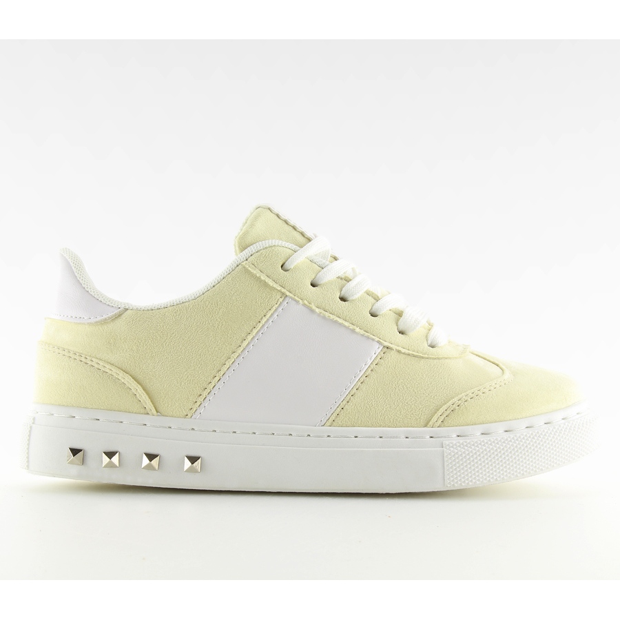 Pastellgula sneakers för kvinnor C928-36 Yellow är det perfekta valet för varje kvinna som vill lägga till lite fräschör och karaktär till sin vardagliga styling. Dessa klassiska sneakers i en ny version kännetecknas av sin ursprungliga design, och sulan dekorerad med dubbar kommer säkerligen att locka uppmärksamhet och göra din styling inte längre tråkig.