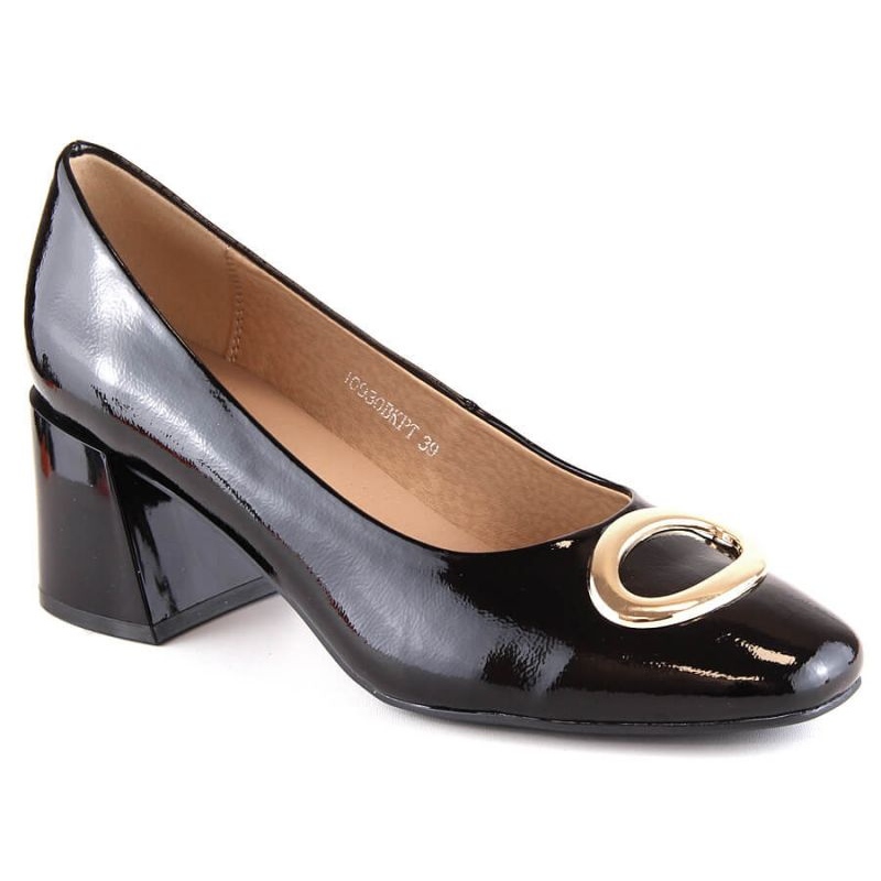 Eleganta, feminina Vincez -pumpar som kombinerar stil med komfort. Den övre gjorda av högkvalitativ lackerad ekologiskt läder ger dem ett glänsande, effektivt utseende och en dekorativ häl med en höjd av 6,5 cm belyser figuren utan att ge upp komfort. Insatsen för naturläder ökar komforten att bära och gör att foten kan andas, tack vare vilken modellen kommer att arbeta både under kvällsutflykter och de viktigaste tillfällena under dagen.