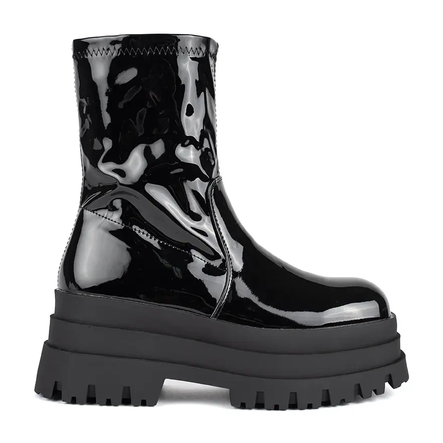 - Modell: Ankelstövlar i lack på plattform