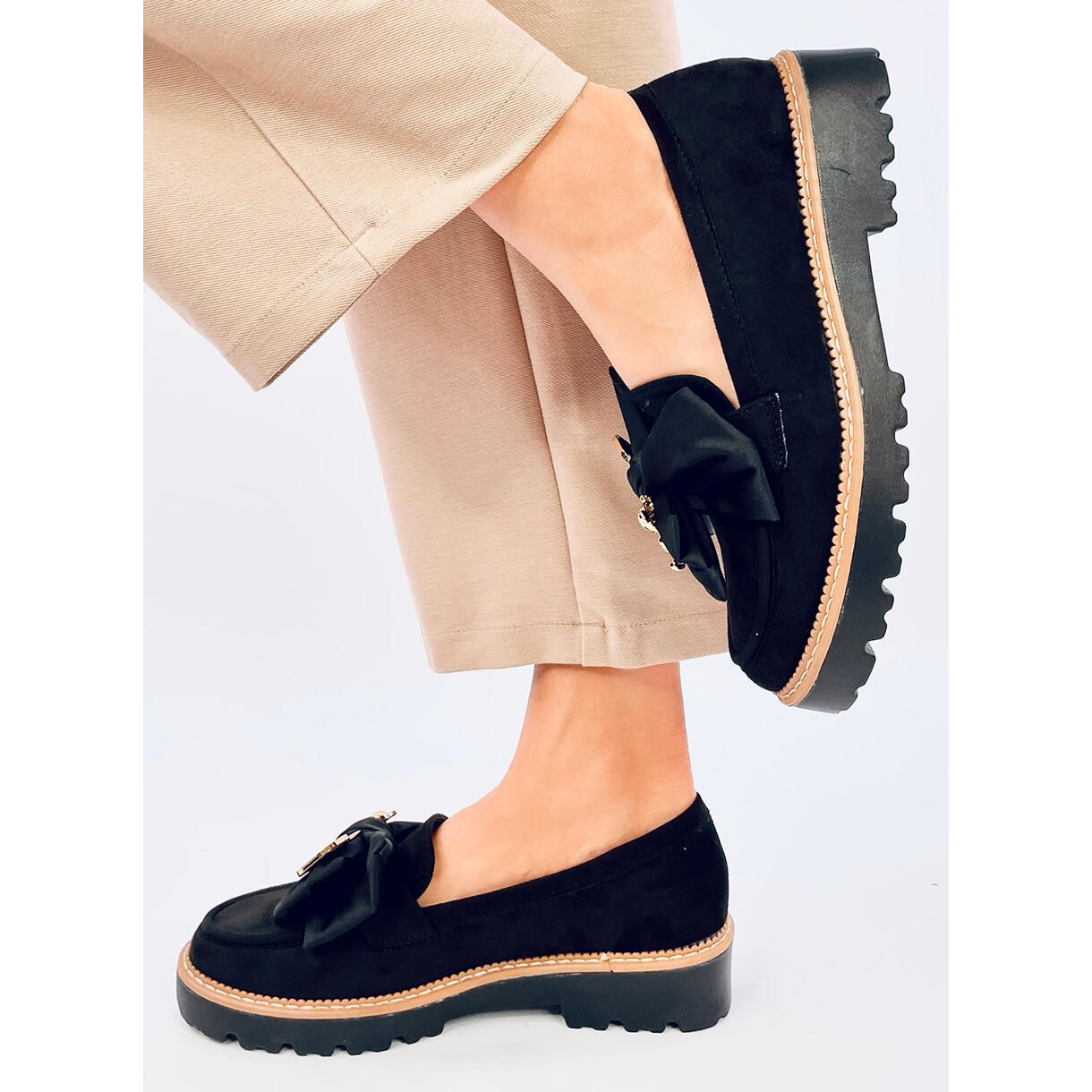 Mockasins med en dekorativ nallebjörn Pennsa Black är ett elegant och extremt snyggt tillägg som säkert kommer att visas i hjärtat av varje kvinna. Dessa mocka loafers på en tjock sula kombinerar komfort och fashionabla utseende, vilket gör dem till ett idealiskt val både dagligen och för speciella tillfällen.