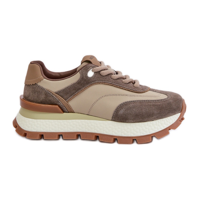 Dessa beige -sneakers, med en höjd av den övre av 6 cm och en 3,5 cm hög plattform, kommer att vara ett perfekt komplement till både sport och mer eleganta kläder. Spets -uppfästelementet låter dig matcha skorna till den individuella fotsträckan, vilket säkerställer ännu större bärande komfort.