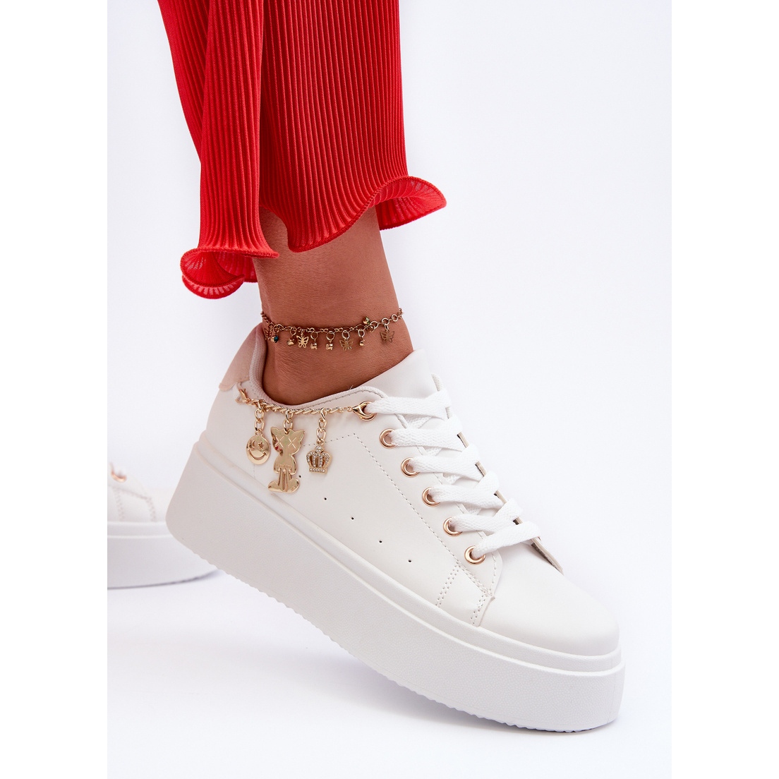 Sneakers är dekorerade med charmiga hängen med en kedja, som ger dem en subtil men distinkt accent. Det är ett idealiskt val för kvinnor som vill se fashionabla ut utan att ge upp vardagens komfort. Denna modell kommer att arbeta både dagligen och under möten med vänner.