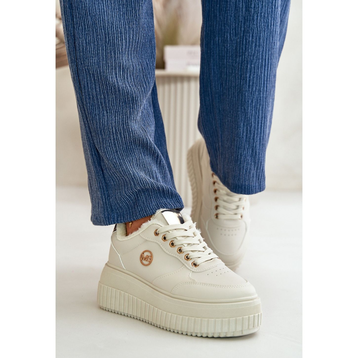 Detaljer: Platformsportskor för kvinnor gjorda av beige ekologiskt läder
