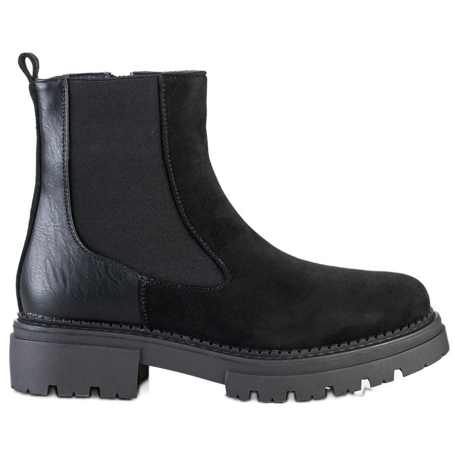 Vi presenterar plattformsstövlar i svart mocka från den välkända tillverkaren Evento, som är det perfekta valet för höst/vintersäsongen. Dessa snygga damskor kombinerar avslappnad och rockig stil, vilket gör dem extremt universella - perfekta för både vardagsbruk och kvällsutflykter.