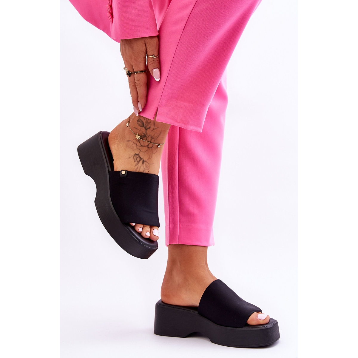 Svarta Carmela flip-flops för kvinnor är ett perfekt val för kvinnor som värdesätter elegans i kombination med komfort. Dessa klassiska flip-flops, placerade på en stabil 6,5 cm hög plattform och en platt klack, är en idealisk lösning för personer som vill förlänga sin figur något och samtidigt undvika bentrötthet som ofta följer med att gå i höga klackar.