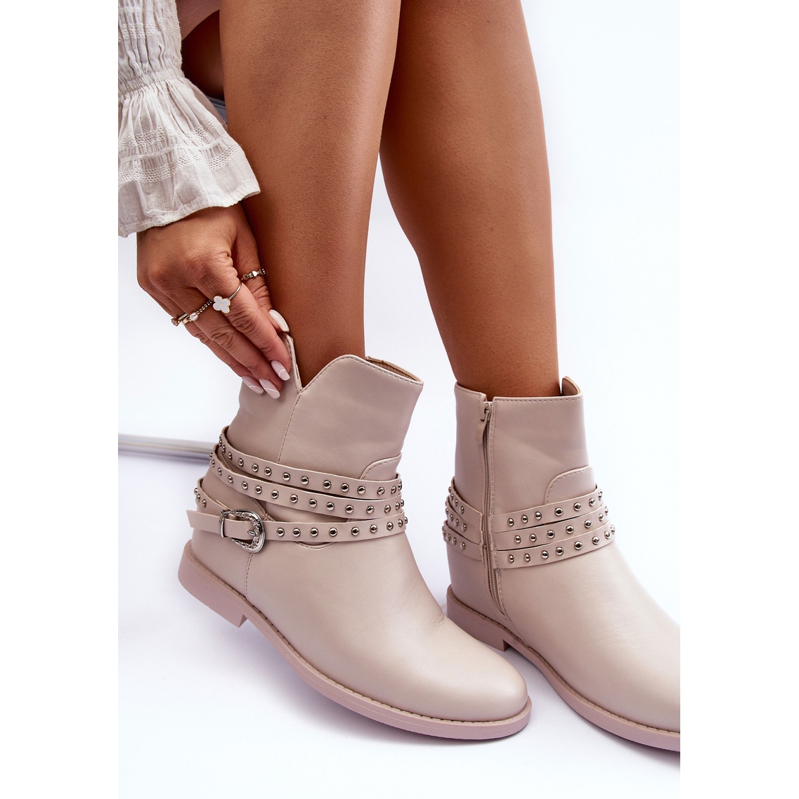 - Modell: Dekorerade ankelstövlar i läder för kvinnor