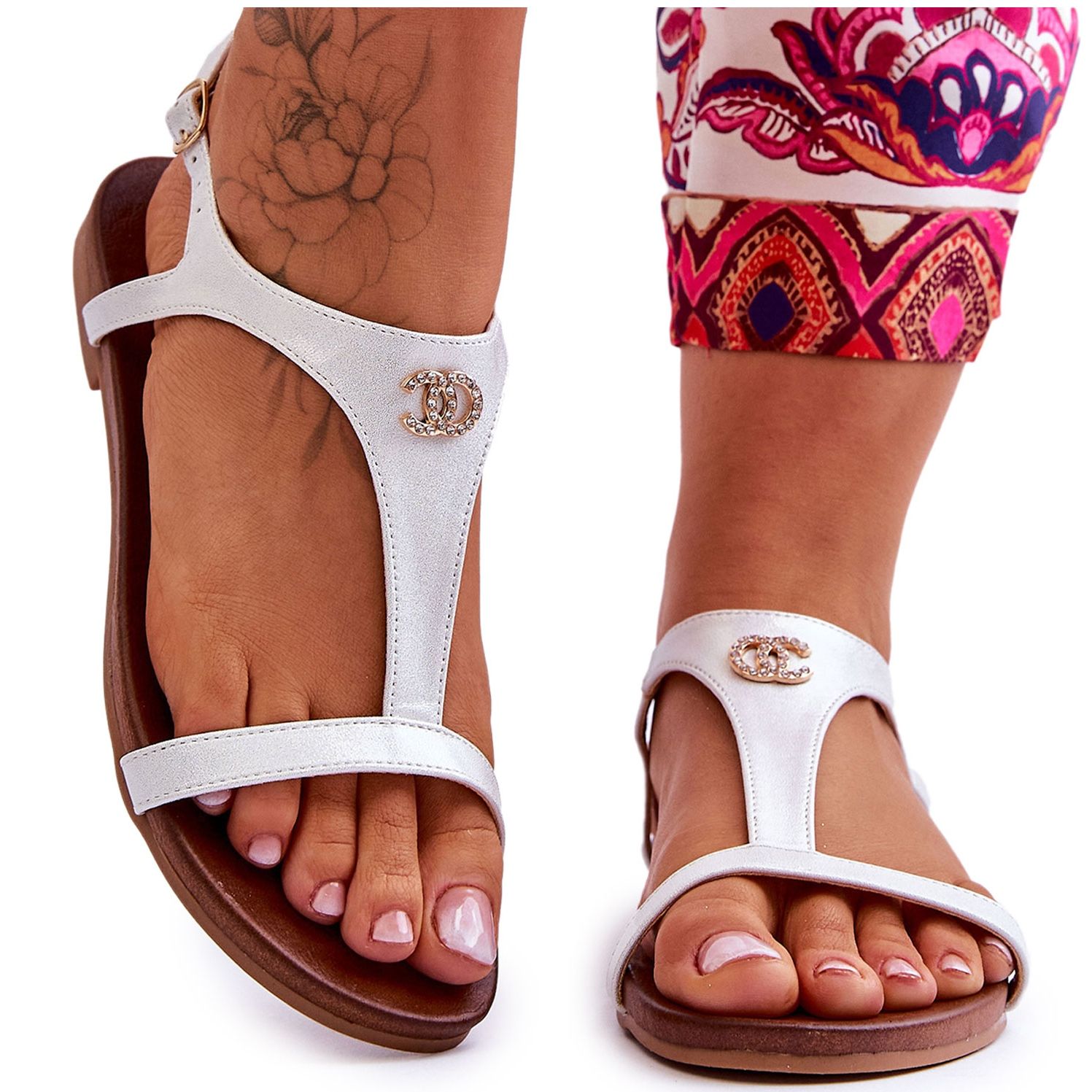 Platta sandaler med dekoration S.Barski KV-5541-45 Silver