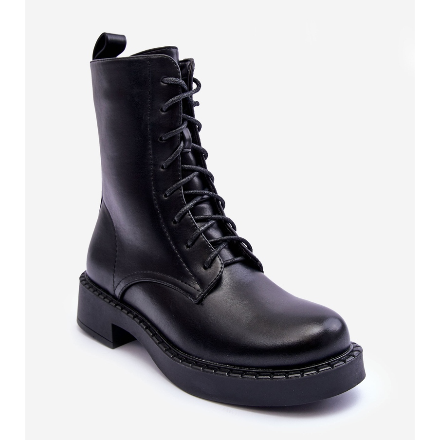 **WS1 Black Aganne Worker Boots med platt klack - viktigt i höst-vintergarderoben**
