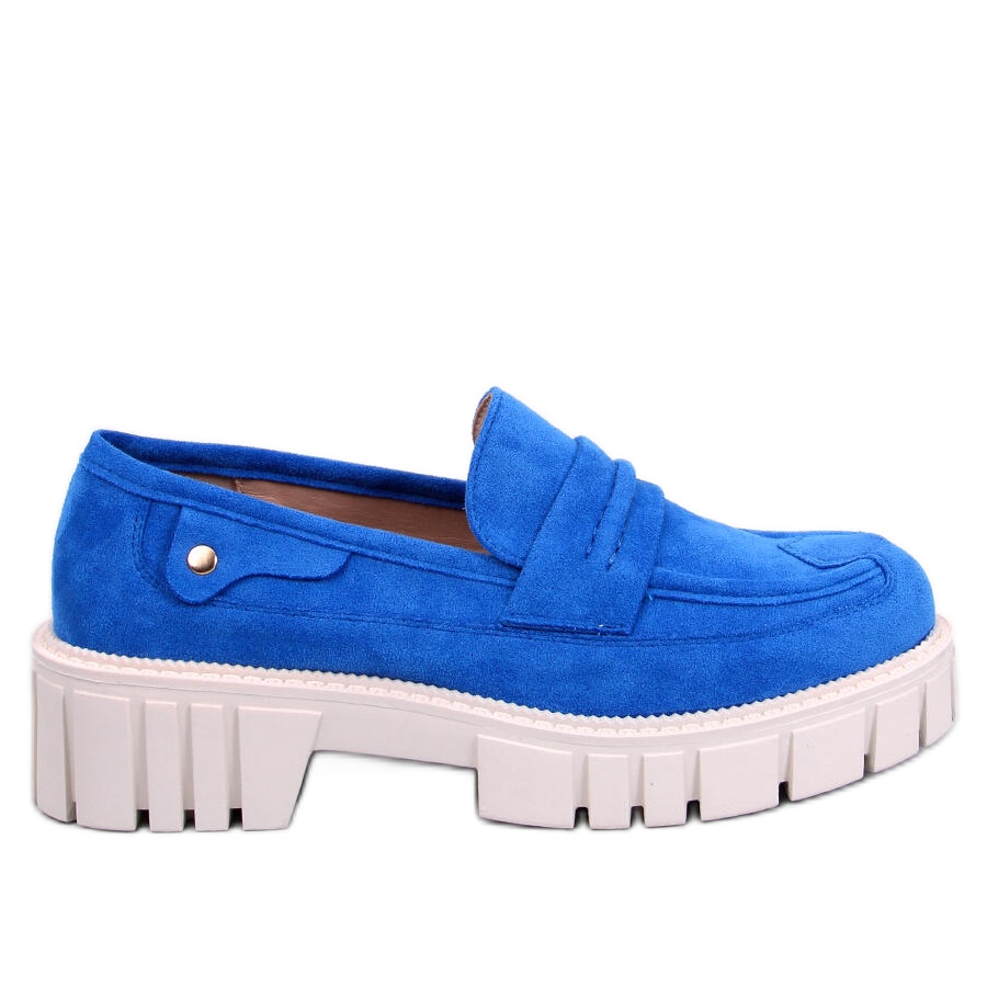Chandra Blue plattformsmockasiner är en kombination av komfort, stil och ekologiskt ansvar, riktade till moderna kvinnor som letar efter bekväma, men också moderiktiga lösningar varje dag. Kvinnors blå mockamockasiner ser extremt eleganta ut, tack vare materialets djupa nyans och delikata glans. Deras största fördel är en massiv 2,5 cm hög sula, som inte bara lägger till några centimeters höjd, utan framför allt säkerställer stabilitet och komfort hela dagen.