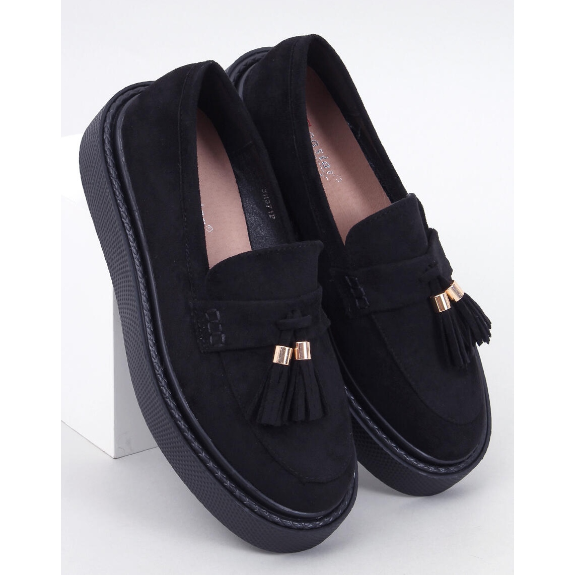 Vänta inte! Satsa på elegans i kombination med de mest fashionabla trenderna och låt dessa svarta loafers bli en integrerad del av dina stiliseringar. Tillverkarens ursprungliga förpackning i form av en låda kommer att göra dem till en bra presentidé för varje fashionabla kvinna. Välj komfort och stil - Välj loafers på den fransade plattformen!
