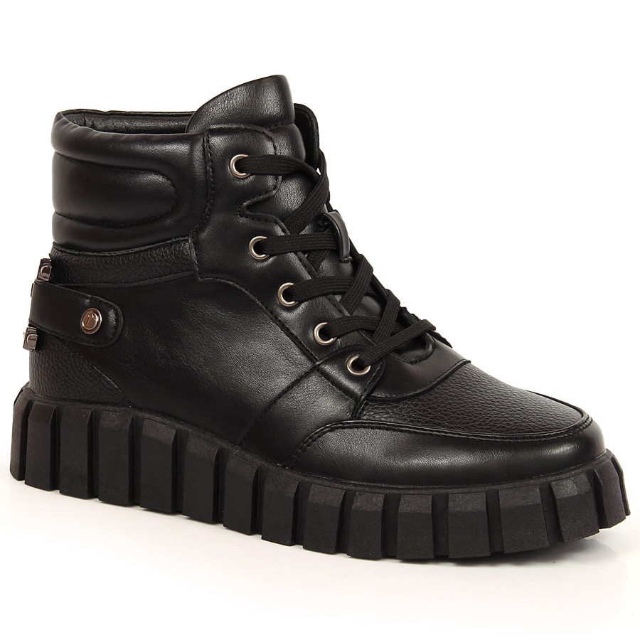 Tillverkad av högkvalitativt ekologiskt läder, arbetarna kännetecknas av en solid konstruktion och attraktiv design. Dekorativa strass ger dem karaktär och gör att de sticker ut från andra modeller. Deras ovandel, cirka 11 cm hög, ger stöd och komfort att bära, och isoleringen i form av en skofilt håller dina fötter varma även under de kallaste dagarna.