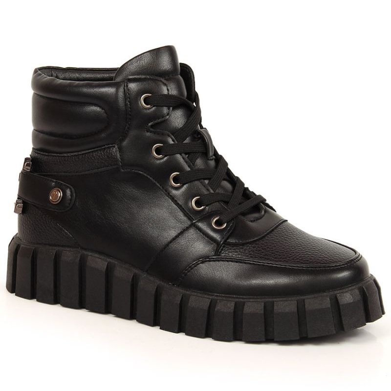 Vi presenterar plattform Workers med Potocki W WOL106A dekoration i svart - perfekta skor för höst- och vinterdagar för moderna kvinnor som värdesätter komfort och stil.