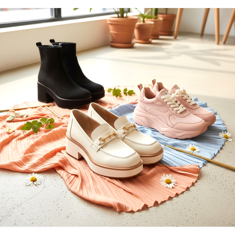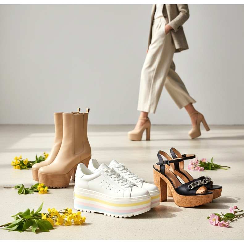 Moderna platåskor våren 2026 skiljer sig från de överdrivna modellerna från tidigare säsonger. De är välproportionerade, estetiskt balanserade och designade för långvarig komfort. Plattformen är inte menad att skrika - den används för att lägga en liten framträdande plats till siluetten samtidigt som den bibehåller en naturlig kroppshållning.