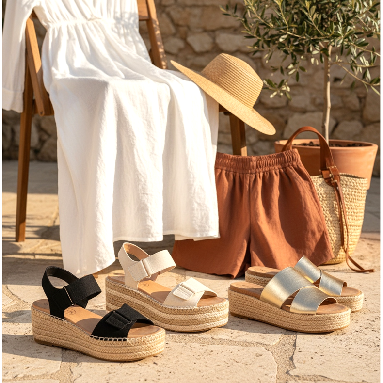 För varma vår- och sommardagar är platåsandaler och flipflops det perfekta valet. Den här säsongen är modeller inspirerade av espadriller särskilt populära - plattformen av juteväv ger skorna en naturlig sommarkaraktär och är samtidigt lättare än en traditionell gummisula.