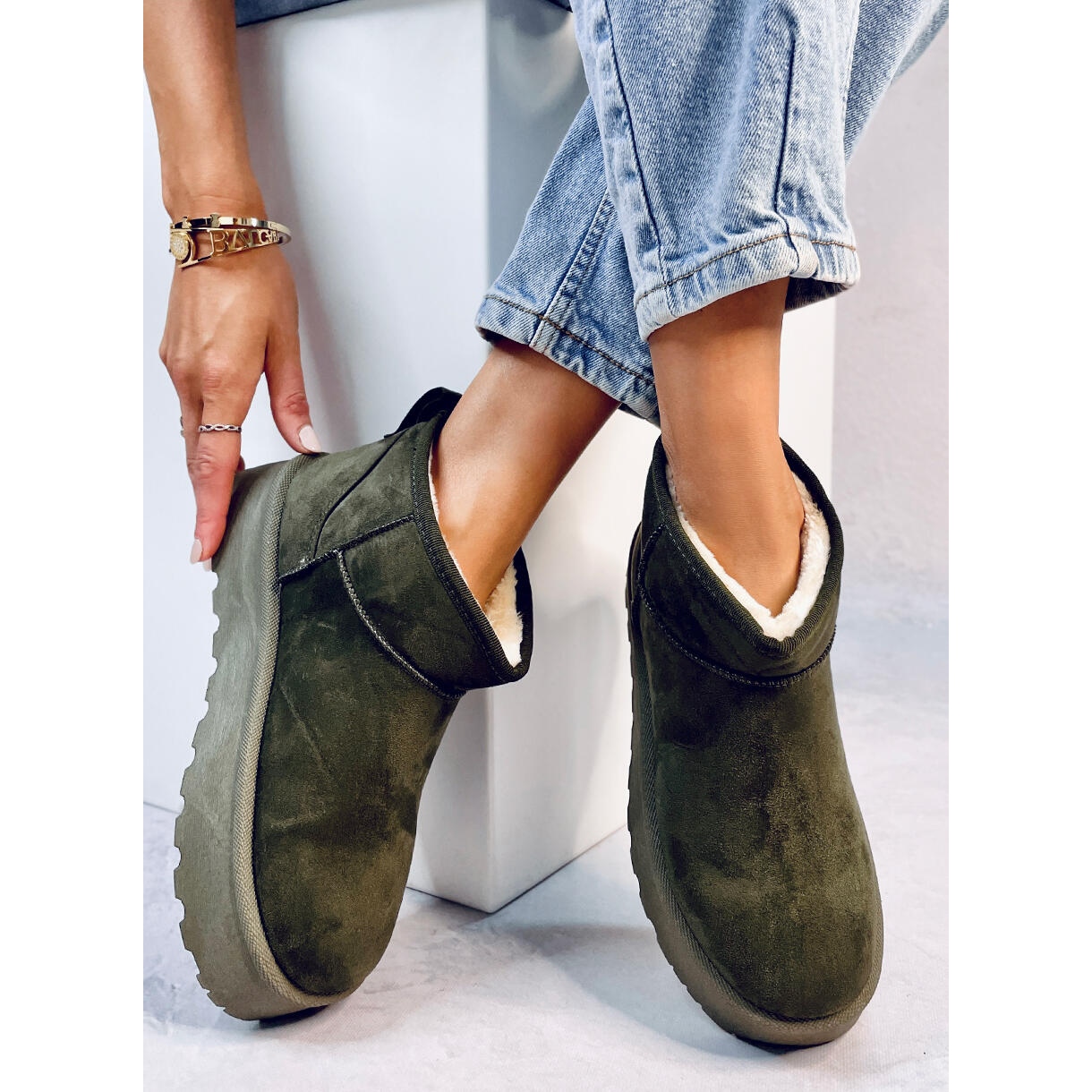 Den ekologiska mocka som dessa skor är täckta med ser inte bara vacker ut utan garanterar också hög hållbarhet. Dessutom är dess gröna färg en avvikelse från typiska vinterfärger, vilket ger lite fräschör till din vintergarderob. Färgnamnet "Grön" betonar skornas naturliga karaktär, vilket utan tvekan kommer att locka uppmärksamheten från älskare av gröna accenter i vardaglig styling.