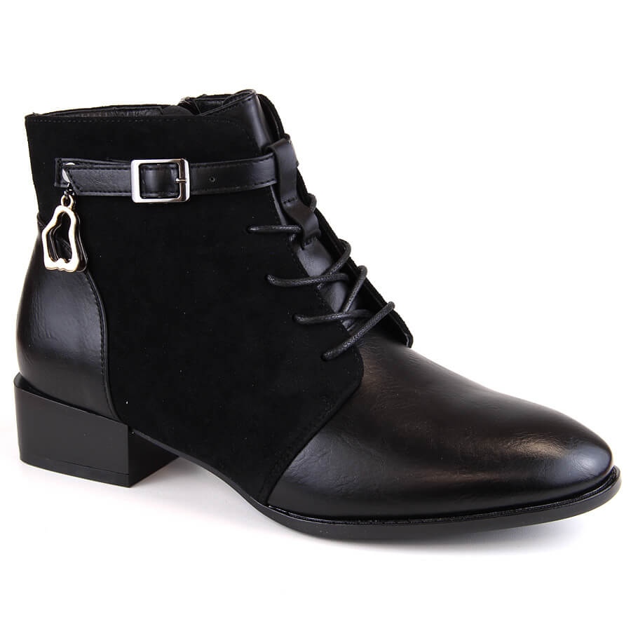 Women's Boots Potocki SZ12260 - Classic in the Winter -utbetalningen. Snygga, svarta ankelstövlar som kombinerar komfort och funktionalitet: Isolering kommer att säkerställa komfort under svalare dagar, och en platt häl med en höjd av 3 cm ger stabilitet med vardagsbruk.