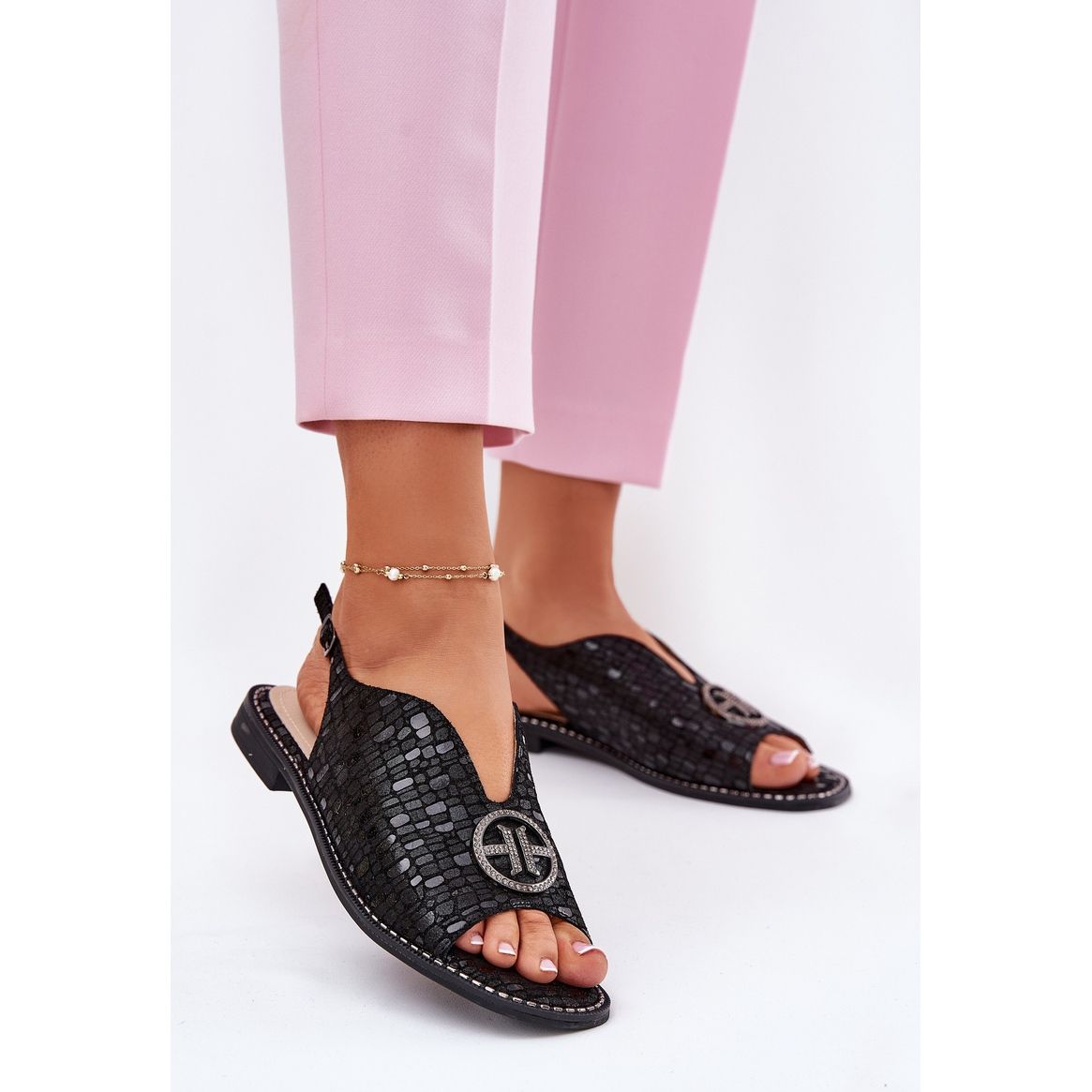 Detaljer: S.Barski Plattklackade lädersandaler med en prydnad av S. Barski KV51-094 svart