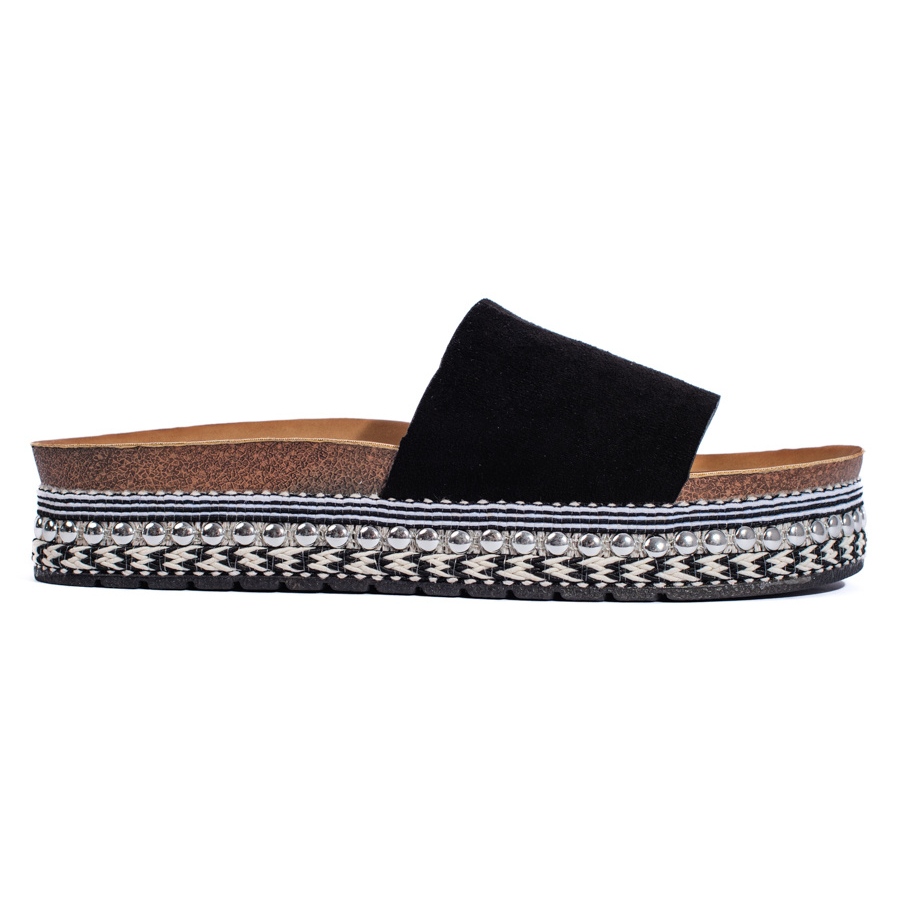 Plattrutschbanor i svart mocka passar perfekt till många stilar - både sportiga och mer avslappnade. Tack vare den öppna hälen och utan tå är de luftiga, vilket gör dem perfekta för varmare dagar.