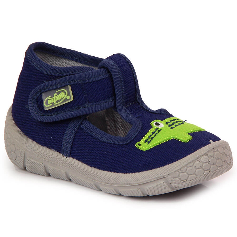 Befado Pojktofflor med kardborreband med alligator marinblå Befado