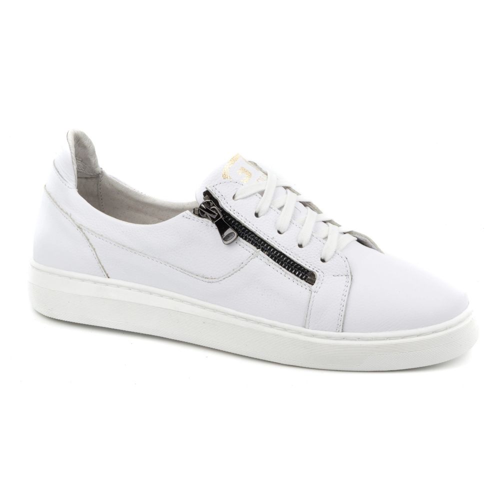 Polbut POLBUT 2125 vita fritidsskor för män gjorda av naturligt läder