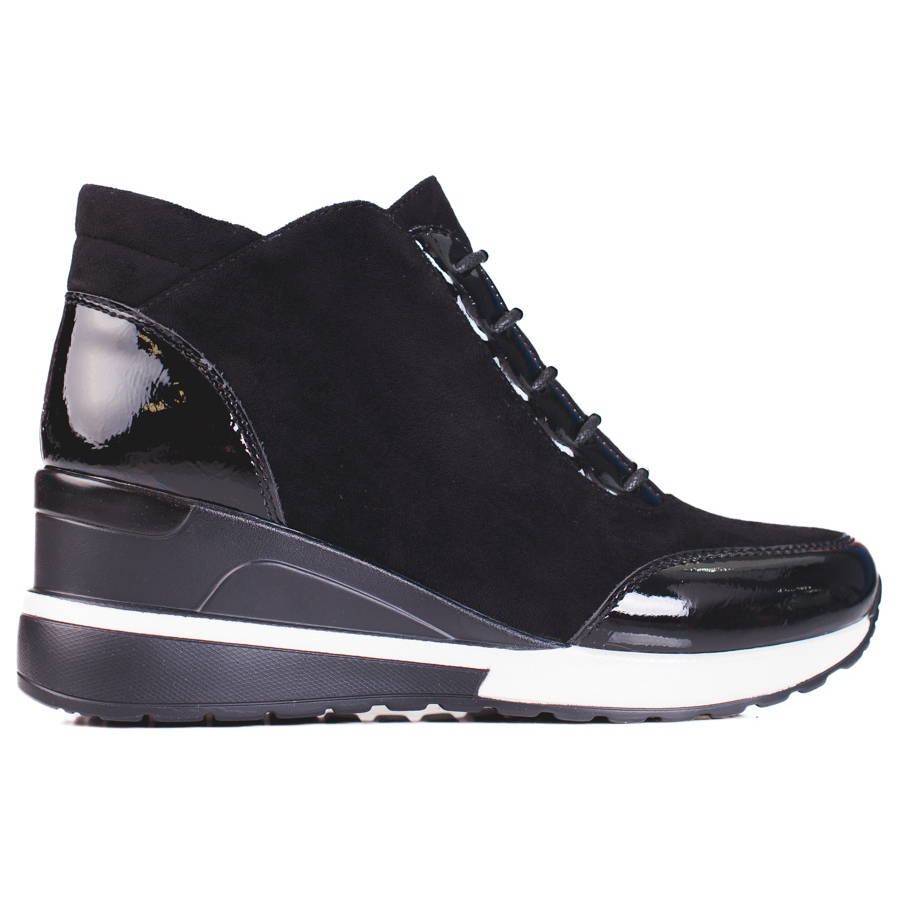 Potocki damsportstövlar med isolering i en elegant svart färg är det perfekta valet för kallare dagar. Tillverkade av det välkända W. Potocki-märket kombinerar dessa skor en sportig stil och en avslappnad karaktär, vilket gör dem perfekta för vardagsutflykter.