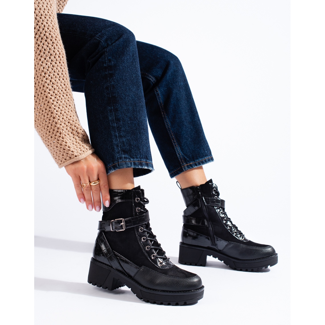 Tack vare dragkedjan och snörningen är dessa stövlar inte bara lätta att ta på, utan låter dig även anpassa dem efter dina individuella behov. Det dominerande mönstret är klassiskt svart vilket gör att de matchar många olika stilar.