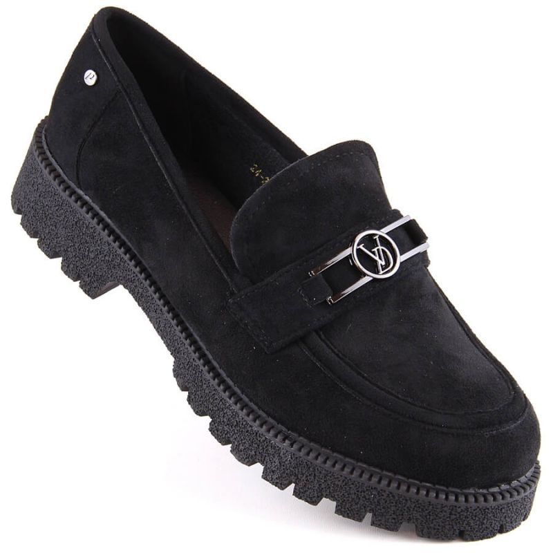 Inuti mockasinerna finns ett syntetiskt material, vilket säkerställer komfort och bekvämlighet att bära hela dagen. Deras klassiska svarta färg gör att de enkelt anpassar sig till en mängd olika kläder.