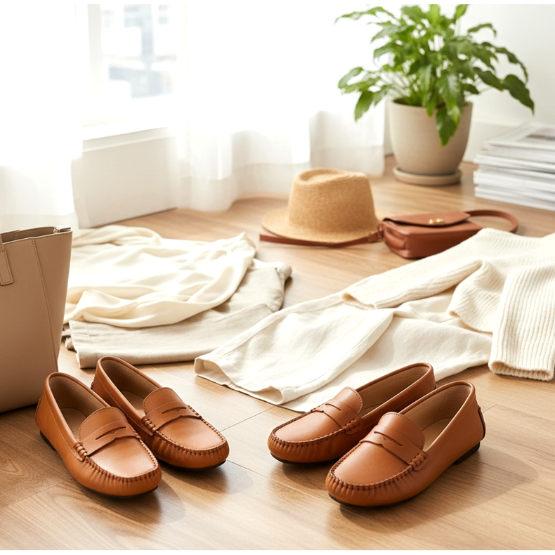 Mockasiner skiljer sig från loafers främst genom sin mjuka, flexibla konstruktion och karakteristiska dekorativa söm på skons ovansida. Dessa skor är gjorda för att bäras hela dagen - lätta, andas och otroligt bekväma. År 2026 upplever loafers en renässans i mjukt lammskinn eller eko-stil i konstläder.