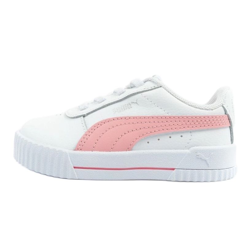 Upptäck en extraordinär möjlighet för små fashionistas! Puma Carina L -skor i vitt är ett idealiskt förslag för flickor som vill kombinera stil med komfort i vardagen. Denna modell inspirerad av Kaliforniens loss på 1980 -talet. Det passar perfekt in i trenderna i stadslivet och erbjuder ett fashionabelt utseende och komfort vid varje steg.