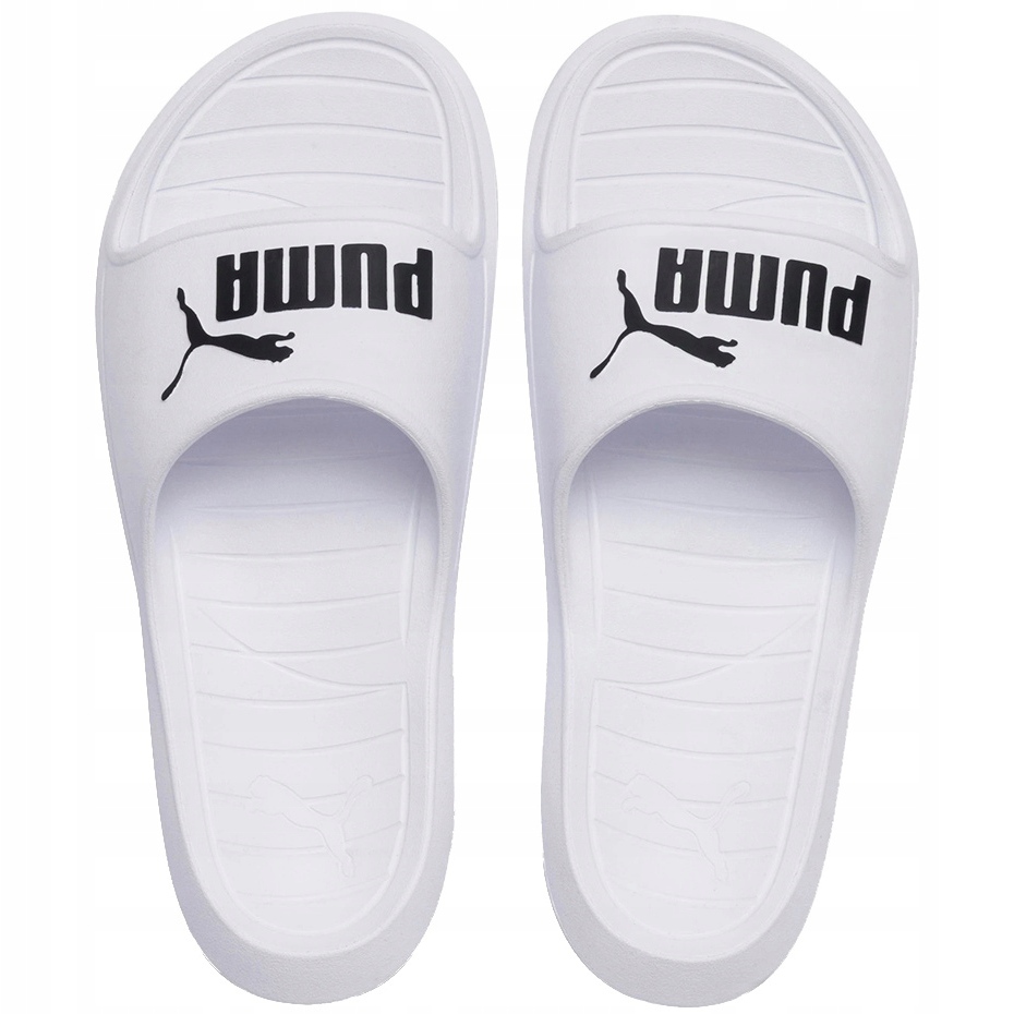 Ett lätt och universellt förslag från PUMA -varumärket - Divecat V2 i Classic White. Den profilerade designen med EVA -skum garanterar komforten att bära, och den yttre sulan med spår förbättrar vidhäftning av våt ytan. Den minimalistiska designen med den kontrasterande logotypen gör att klaffarna fungerar både på stranden och vid poolen eller för vardagliga, gratis outfit.