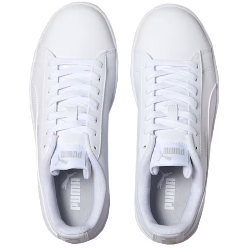 Moderna, universella puma -up -skor i vitt är ett bekvämt förslag för pojkar och flickor dagligen. Lätt design och klassiskt utseende arbete i skolan, på lekplatsen och under vardagliga aktiviteter.