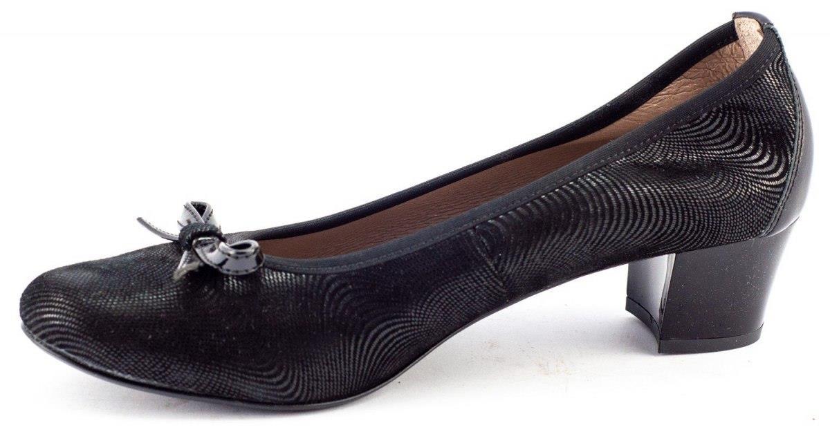 Klassiska och universella maxoni -pumpar Modell 1634 tillverkade helt av naturläder (yttre och insats). Svart färg och en rundad näsa ger dem en tidlös karaktär, och en stabil stolpe med en höjd av 4,5 cm ger komfort under dagen.