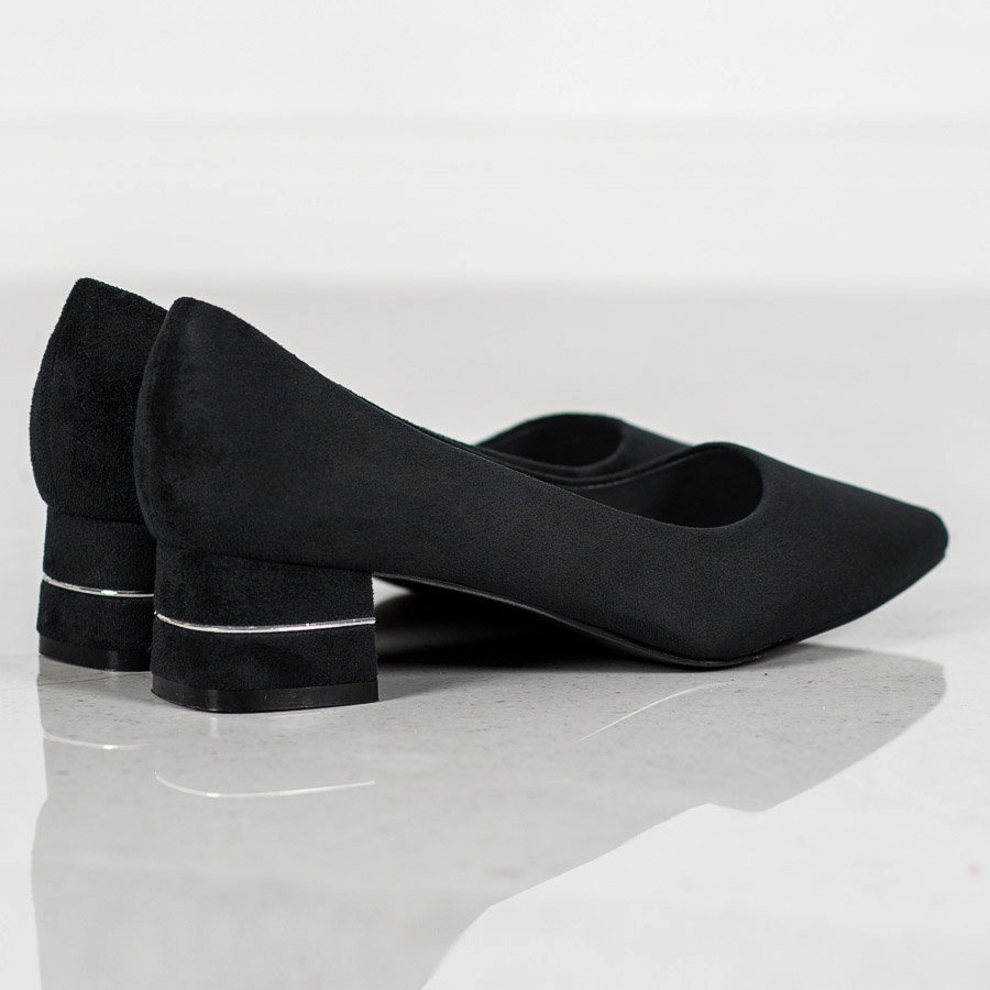 Goodin svarta pumps är det perfekta valet för kvinnor som letar efter eleganta skor för speciella tillfällen. Dessa skor är gjorda av mockaläder och kombinerar stil och komfort. Den dekorativa silverremmen ger dem en unik karaktär, och den 4 centimeter långa hälen säkerställer stabilitet och självförtroende när de bärs.
