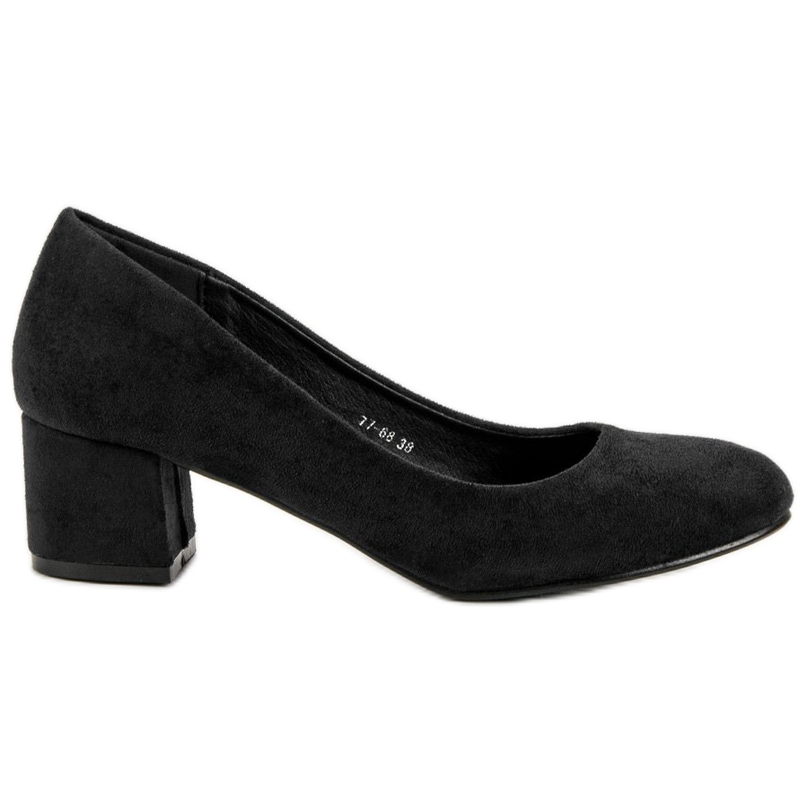 Innersulamaterialet är tillverkat av ekologiskt läder och säkerställer bärkomfort hela dagen, och syntetsulan säkerställer hållbarhet och flexibilitet. Den klassiska svarta färgen på pumparna gör att de matchar många olika stilar – både eleganta klänningar och casual set.