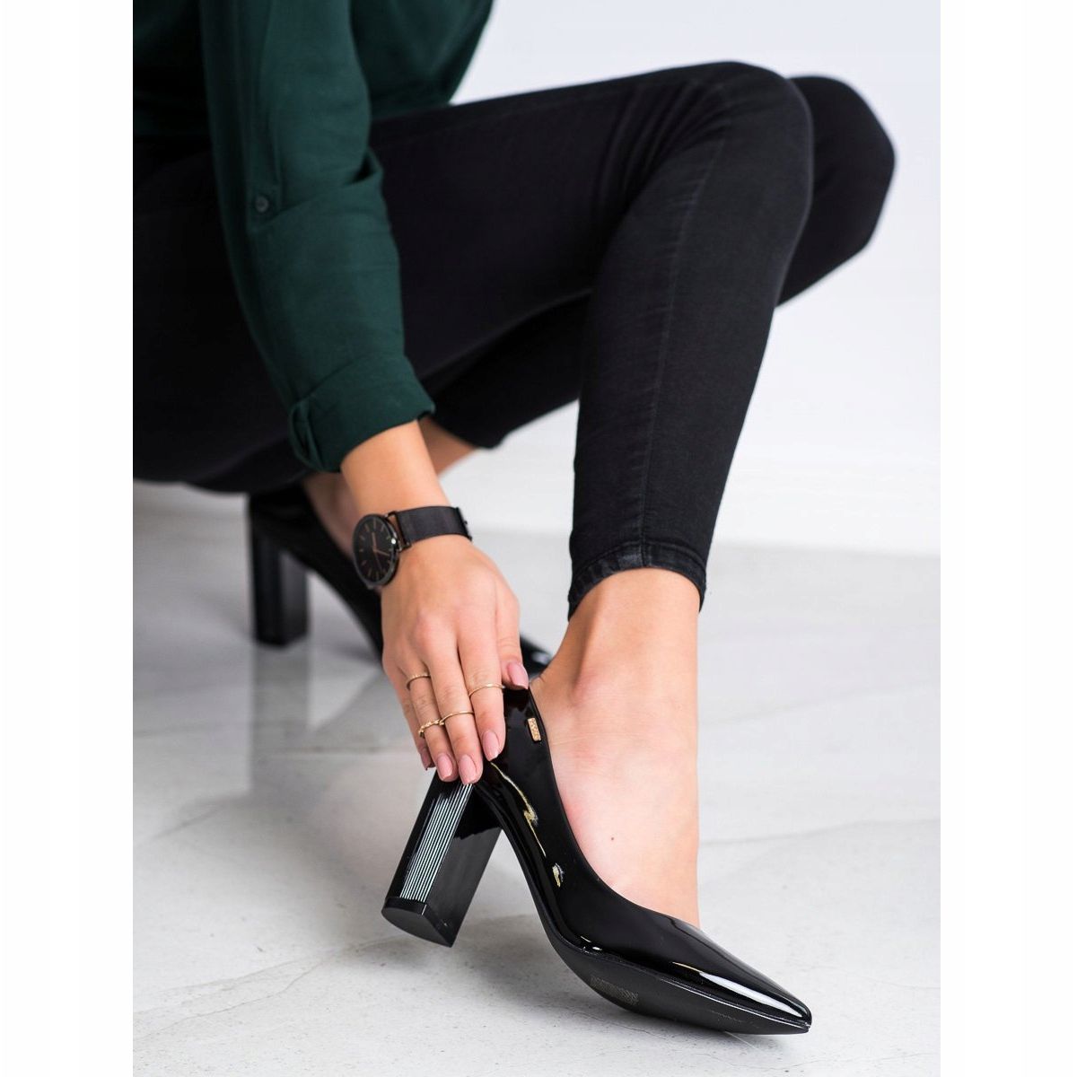 Pumparna är gjorda av högkvalitativa material, översta lagret är 100% konstläder och fodret är 50% naturligt läder, vilket säkerställer komfort och hållbarhet. Deras spetsiga tå ger elegans, och den lackade finishen gör dem till ett perfekt alternativ för kvällsutflykter och fester. Tack vare 8,5 cm hälen får kvinnor en elegant siluett och känner sig samtidigt stabila och bekväma.