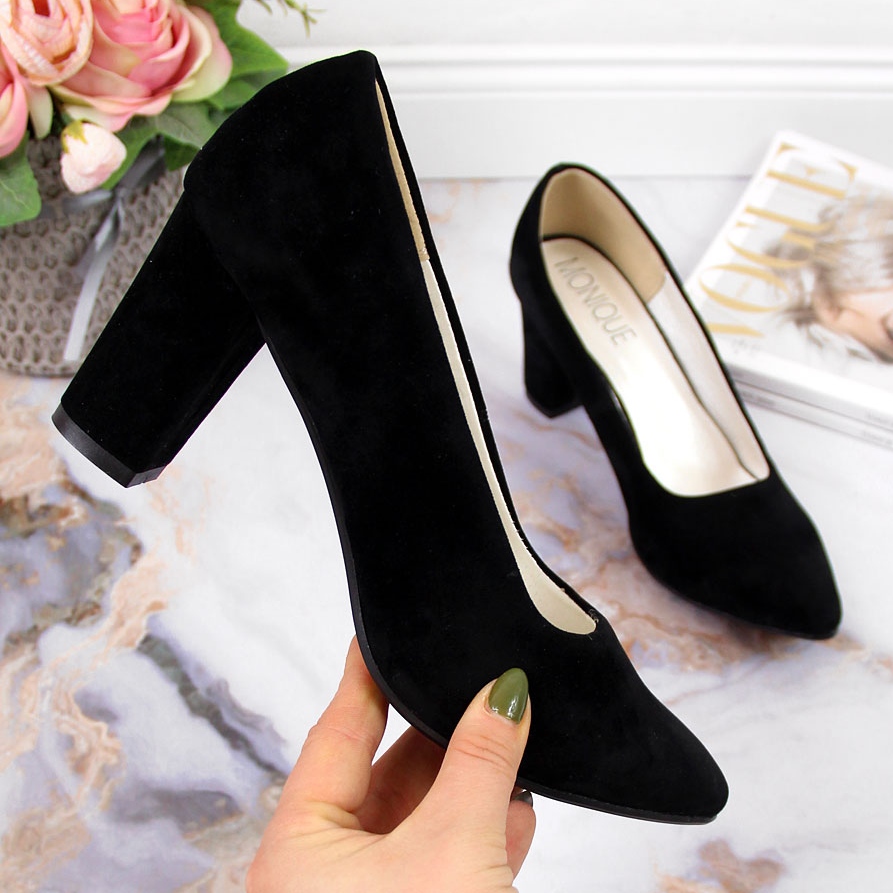 Svarta mocka stilettpumps Monique är ett elegant val som kommer att lägga klass till varje styling. Tillverkade av det polska märket MONIQUE, kombinerar dessa pumps moderiktig design med komfort att bära. De är perfekta för både vardags- och kvällskläder, vilket gör dem till ett universellt inslag i varje kvinnas garderob.