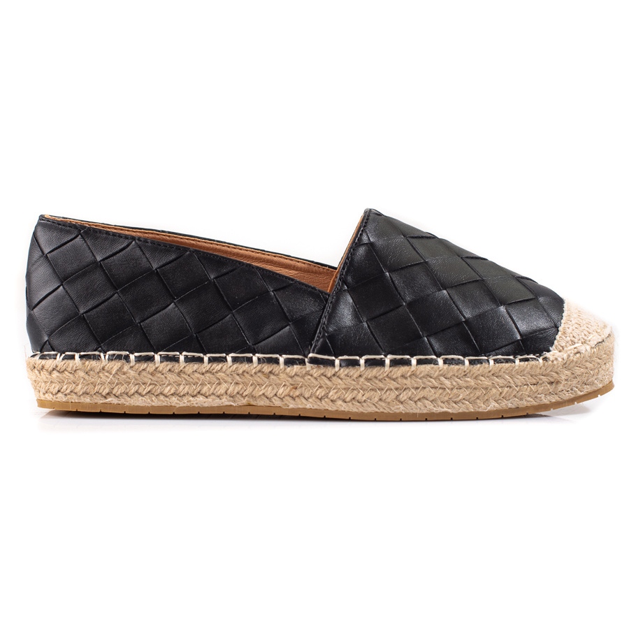 SHELOVET tar hand om varje detalj, därför är espadrillorna tillverkade av högkvalitativt ekologiskt läder, vilket gör dem inte bara snygga, utan också miljövänliga. Insidan av skorna är avslutad med mjukt läderimitation, vilket säkerställer maximal bärkomfort hela dagen. Den runda tån och den uppbyggda, mjuka hälen ger elegans, och den 2 cm höga plattformen gör var och en av dina stylingar lätta och eleganta.