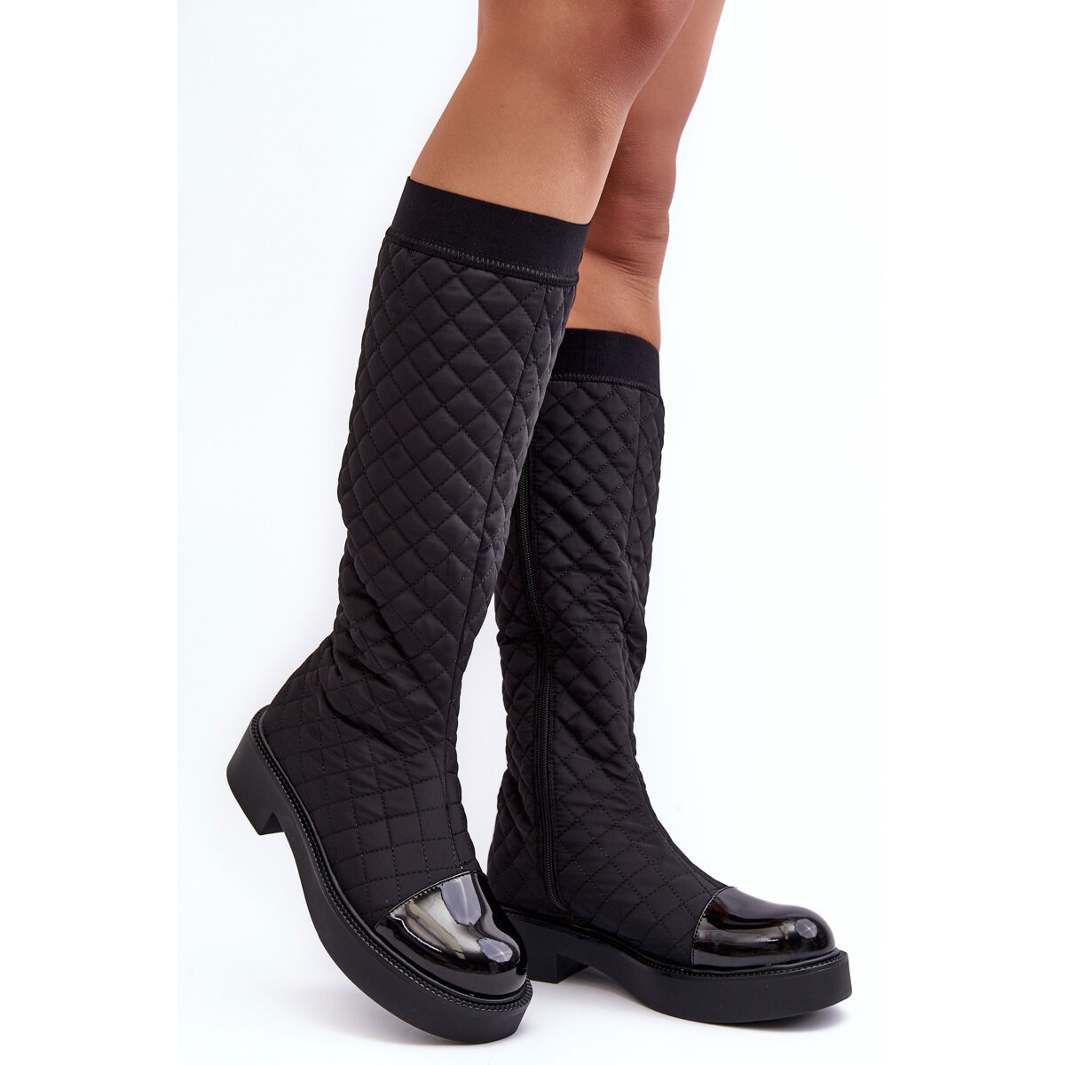 PS1 PS1 Quiltade over-the-knee stövlar med platta klackar, svart Amalfri
