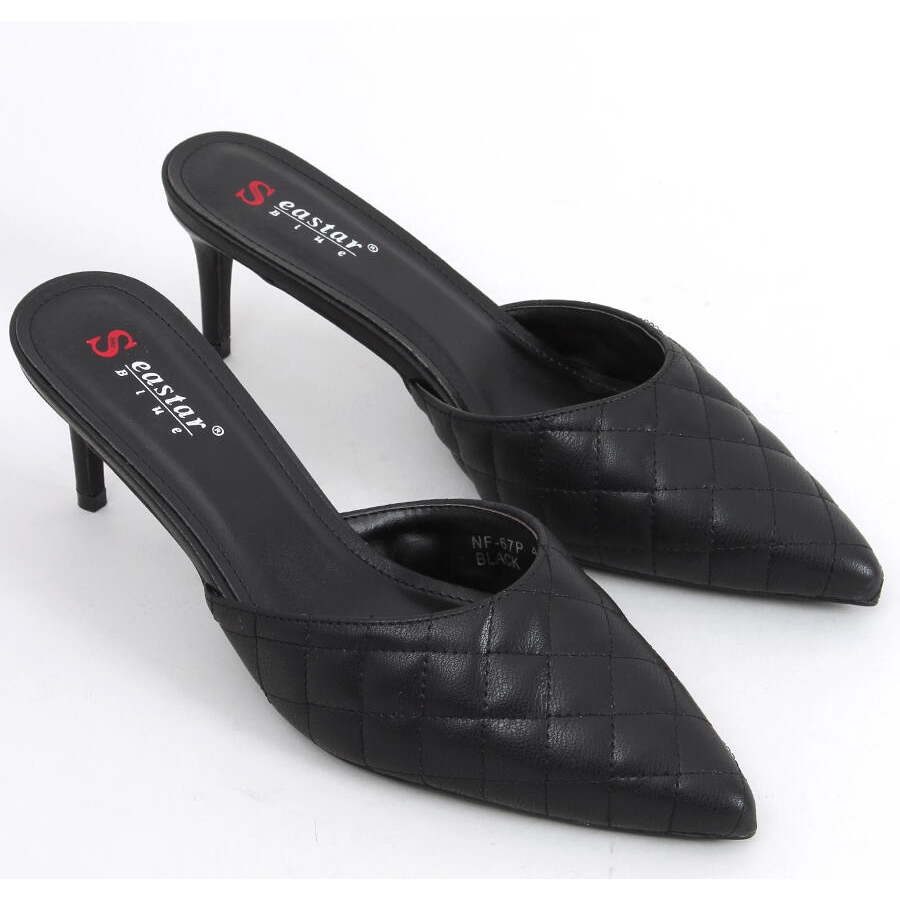 Vi presenterar Gloria Black quiltade stiletter i en elegant svart färg, som passar perfekt till den feminina stilen. Dessa unika damflip-flops med 7,5 cm hög klack är ett perfekt val både för vardagsbruk och för speciella tillfällen. Deras välformade design med lätt avsmalnande tår och ett vackert, quiltat mönster kommer att få varje kvinna att känna sig säker och elegant.