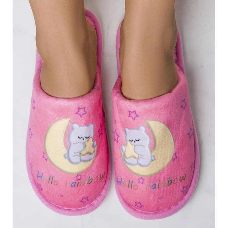 Letar du efter charmiga och varma tofflor under kallare dagar? Rainbow Moon är kvinnors tofflor med en inbyggd, rund näsa dekorerad med en charmig applikation med ett djurmotiv. Tillverkade av mjukt tyg och isolerat från insidan ger de komfort och trevlig känsla av värme när de bär.