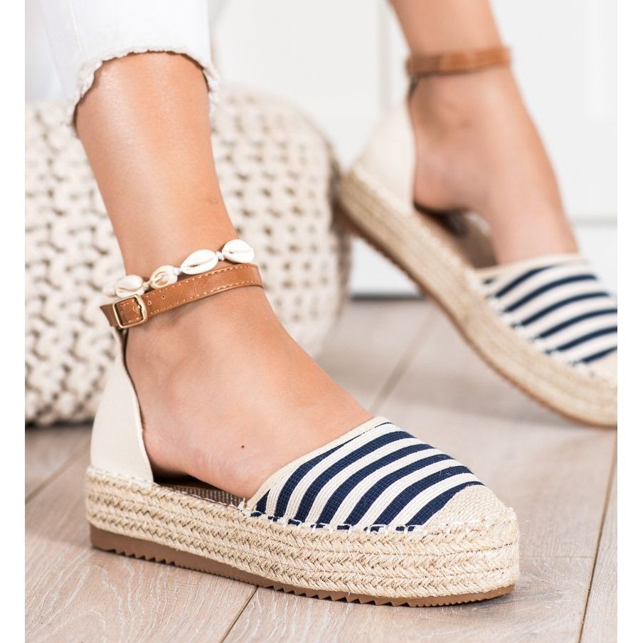 Information: Clowse Randig Espadrilles med spänne beige blå