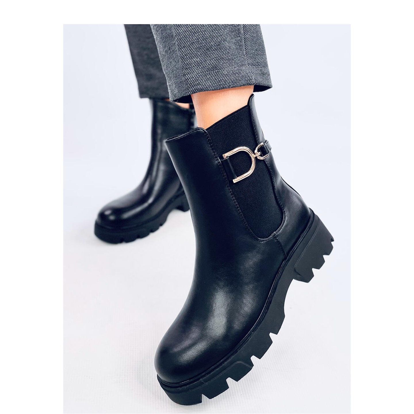 De kännetecknas av ett klassiskt snitt med en flexibel införande på sidorna, vilket gör det lättare att ta på sig och ta av. En ytterligare fördel är det praktiska dragkedjan med zip, som ger bekvämlighet med användning. Den 5 centimeter breda klacken stöder huvudsakligen hela figuren, och plattformen med 2 centimeter ger ytterligare komfort när du bär.