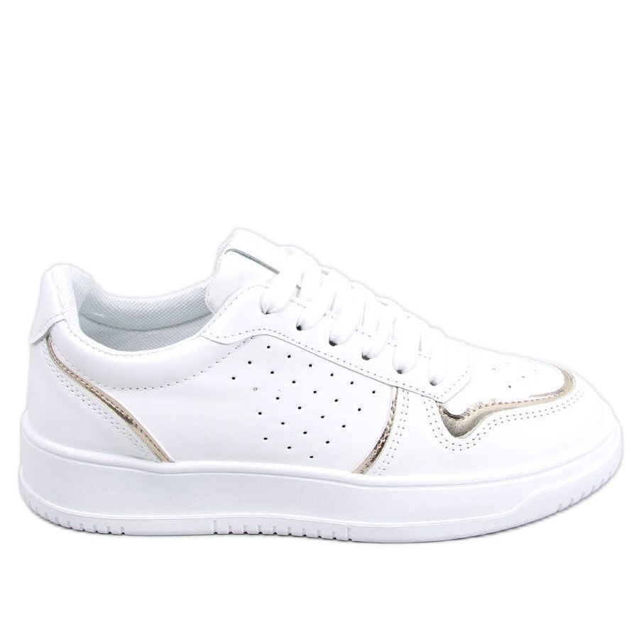 BM Reggi Gold damsneakers i vitt är det perfekta valet för kvinnor som värdesätter både stil och komfort. Dessa sportskor med snörning kombinerar en minimalistisk design med eleganta guldaccessoarer som ger dem en unik karaktär. Deras universella färg gör att de passar perfekt in i varje vardagsstyling, vilket väcker uppmärksamhet.