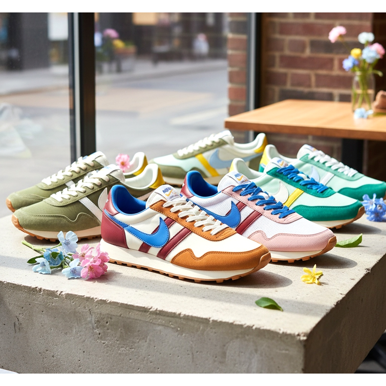 Nike Cortez är en annan ikon - en sko skapad för OS 1972 i München, med en distinkt smal siluett och en färgglad lapptäckt ovandel. 2026 kommer Nike att släppa den i nya, pastellfärgade versioner som passar perfekt till vårstämningen.